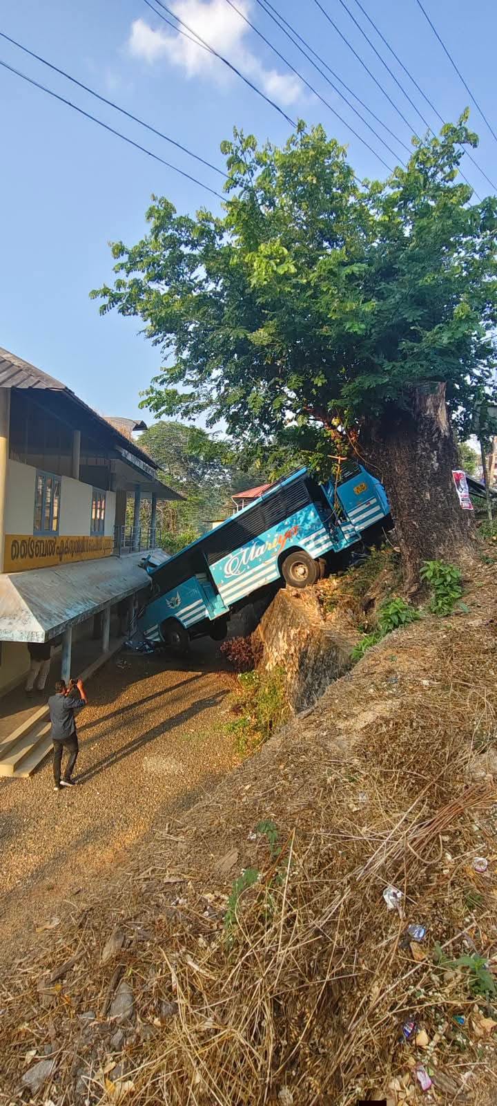 തൊടുപുഴ പൂമാലയിൽ നിർത്തിയിട്ട ബസ് മറിഞ്ഞു